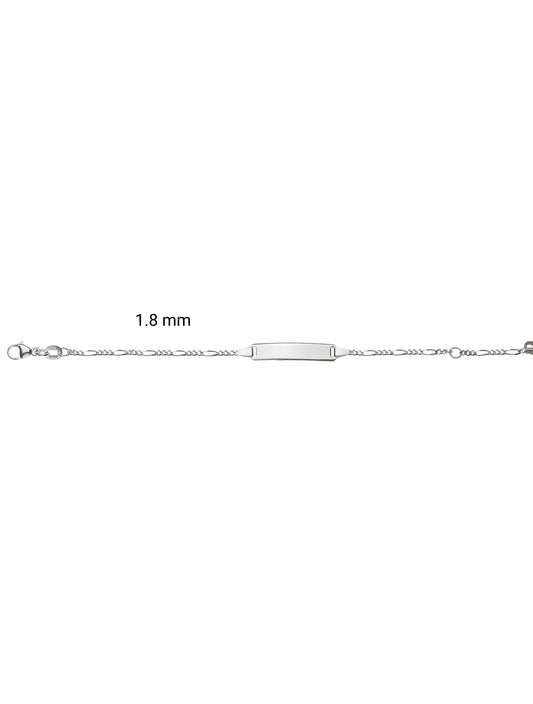 Bébé Bracelet Figaro 3+1 mit Gravurplatte rechteckig lang (Weissgold 375)